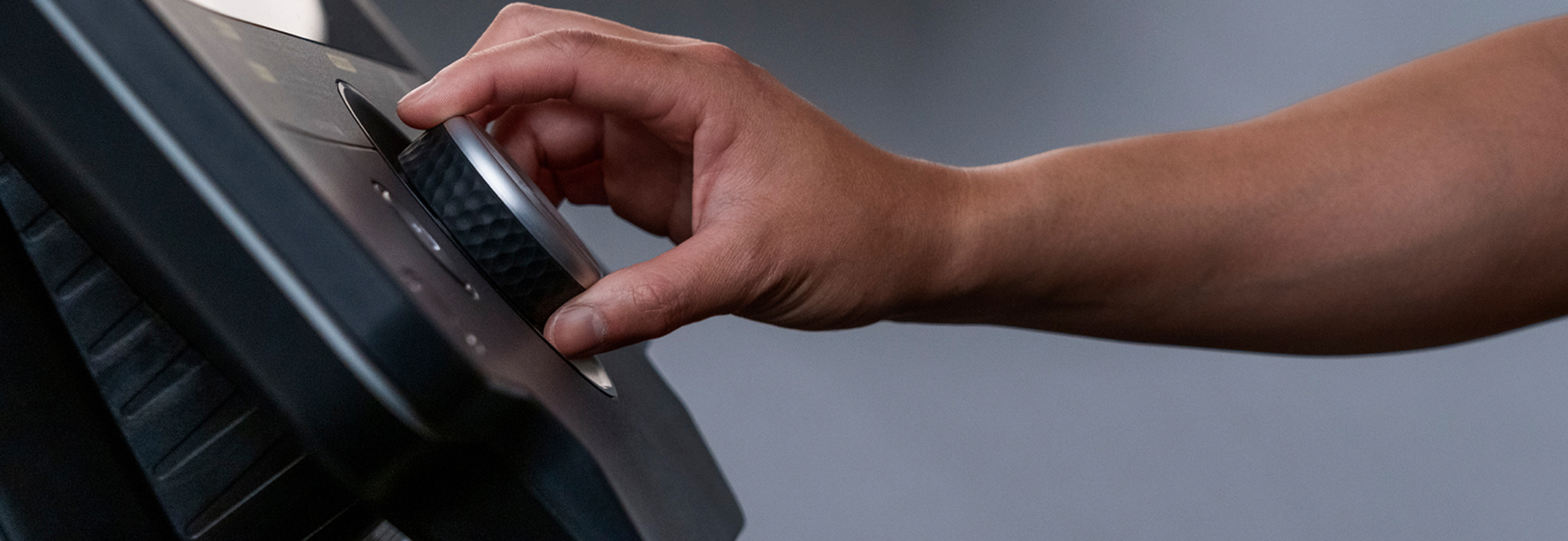 Користувацький інтерфейс з білим світлодіодним підсвічуванням, що складається лише з трьох кнопок та основних індикаторів, пропонує простоту та зручність використання. Ідеально підходить для користувачів, які віддають перевагу простим тренуванням.